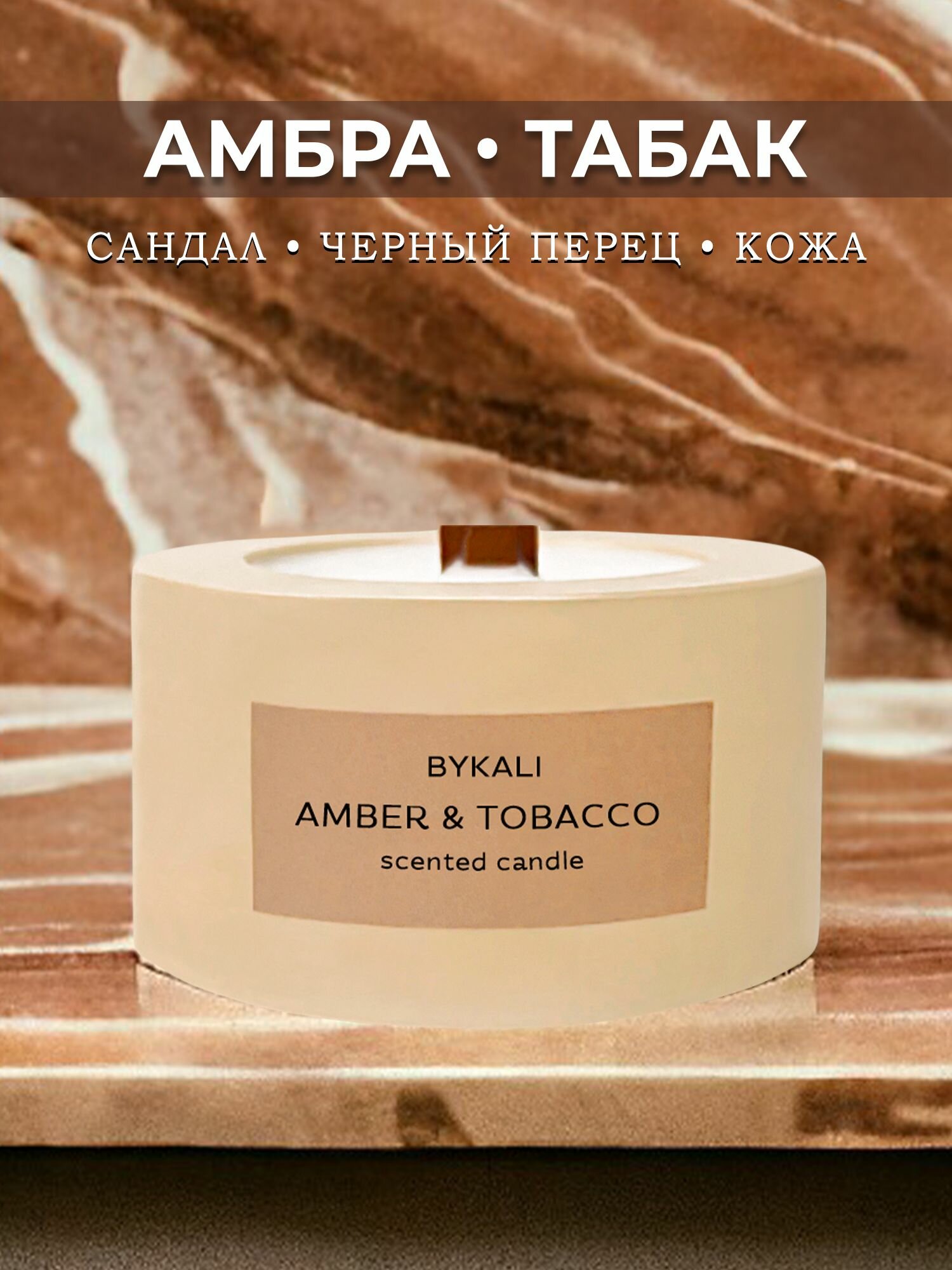 Отзывы на Свеча ароматическая "BYKALI" Амбра и Табак / с деревянным фитилем интерьерная в гипсе 50 мл