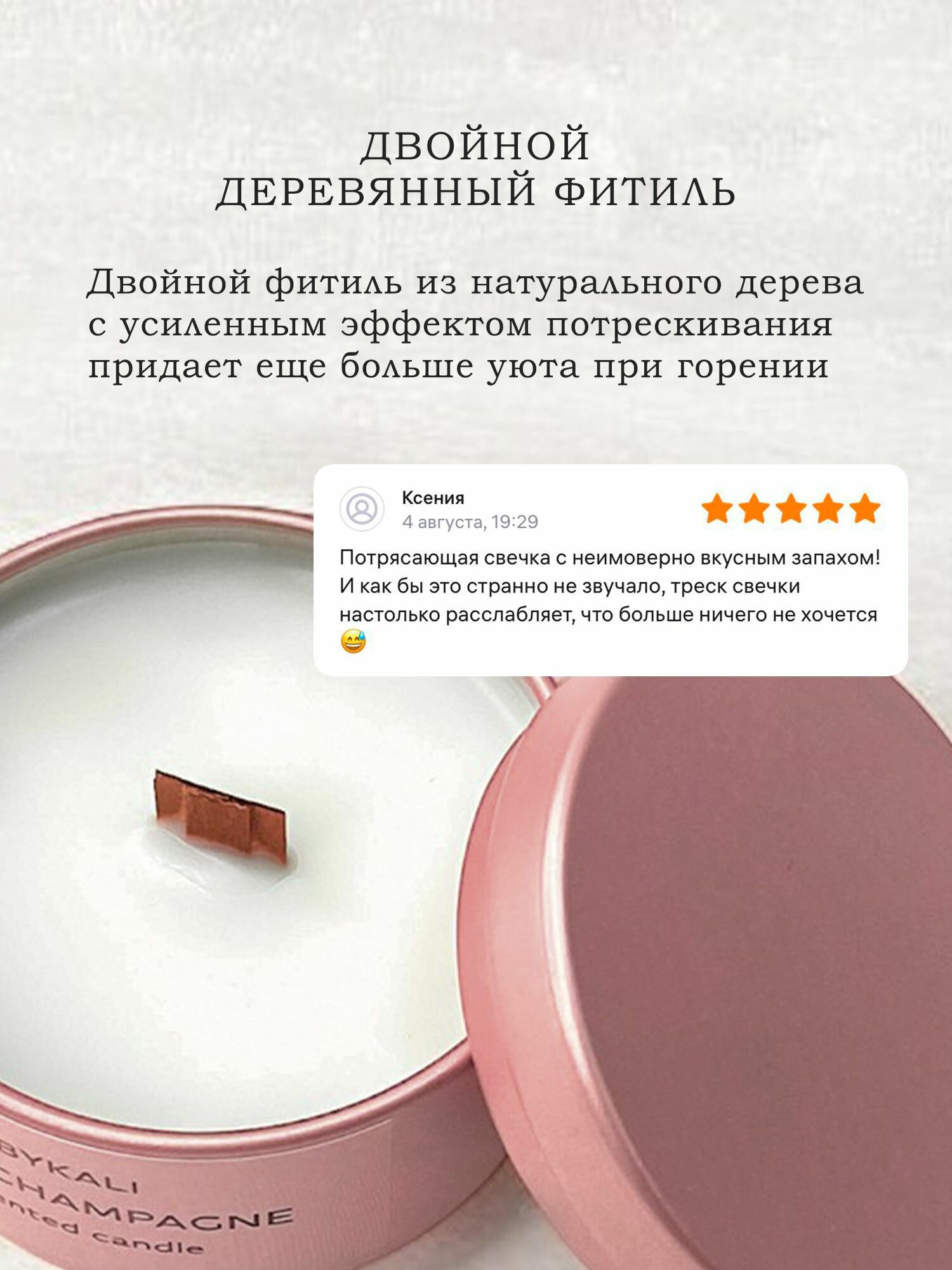 Отзывы на Свеча ароматическая "BYKALI" Розовое шампанское - с деревянным фитилем в банке с крышкой 50 мл