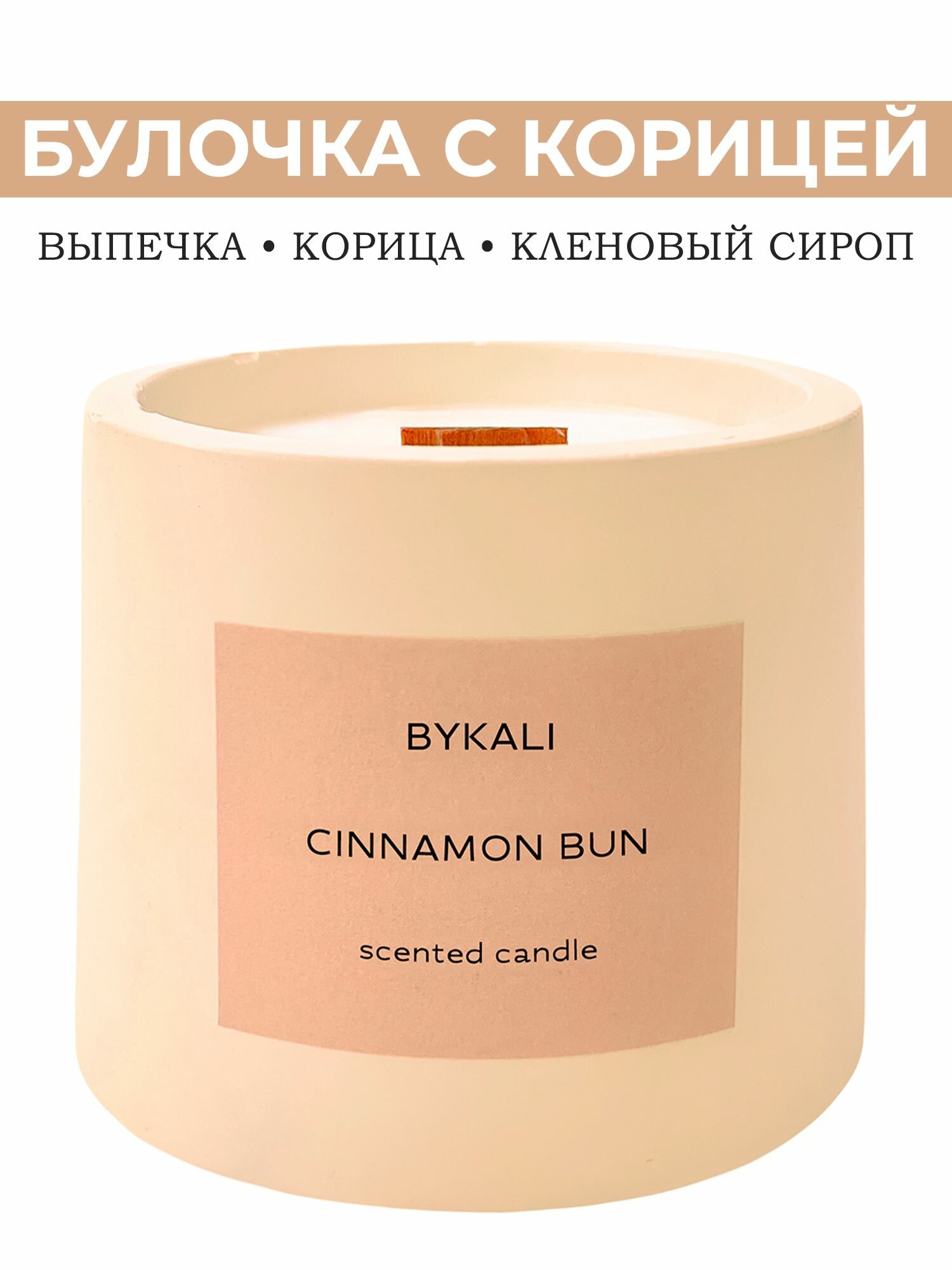 Свеча ароматическая "BYKALI" Булочка с корицей / с деревянным фитилем интерьерная в гипсе 120 мл информация: