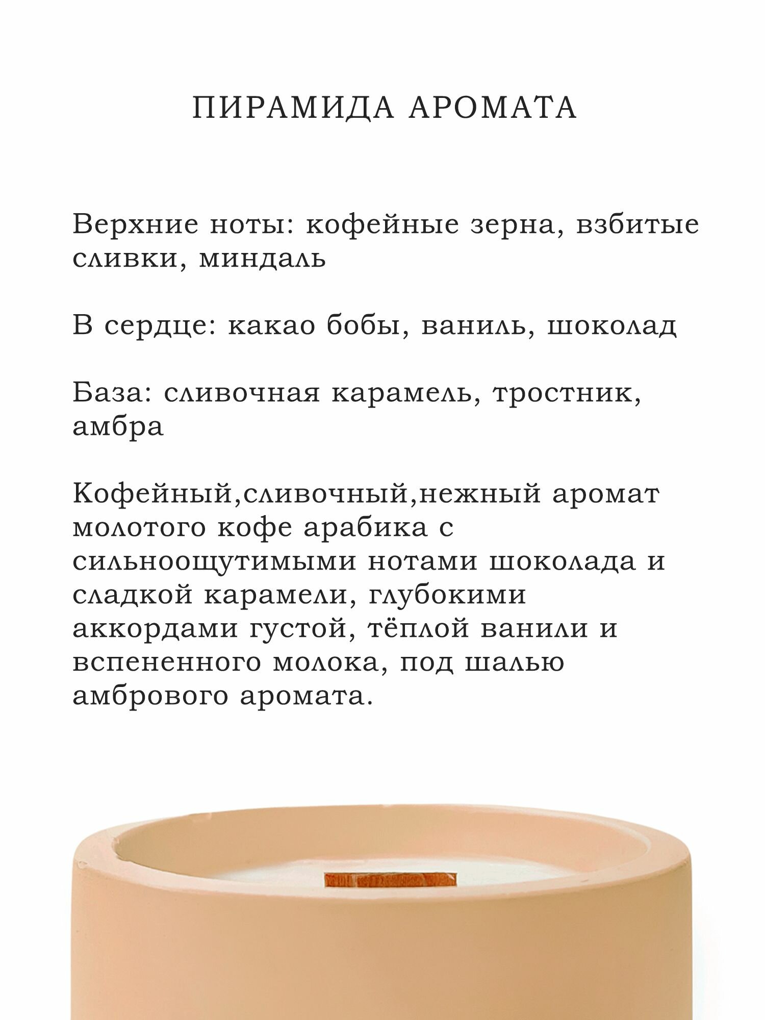 Свеча ароматическая "BYKALI" Капучино / с деревянным фитилем интерьерная в гипсе 120 мл информация: