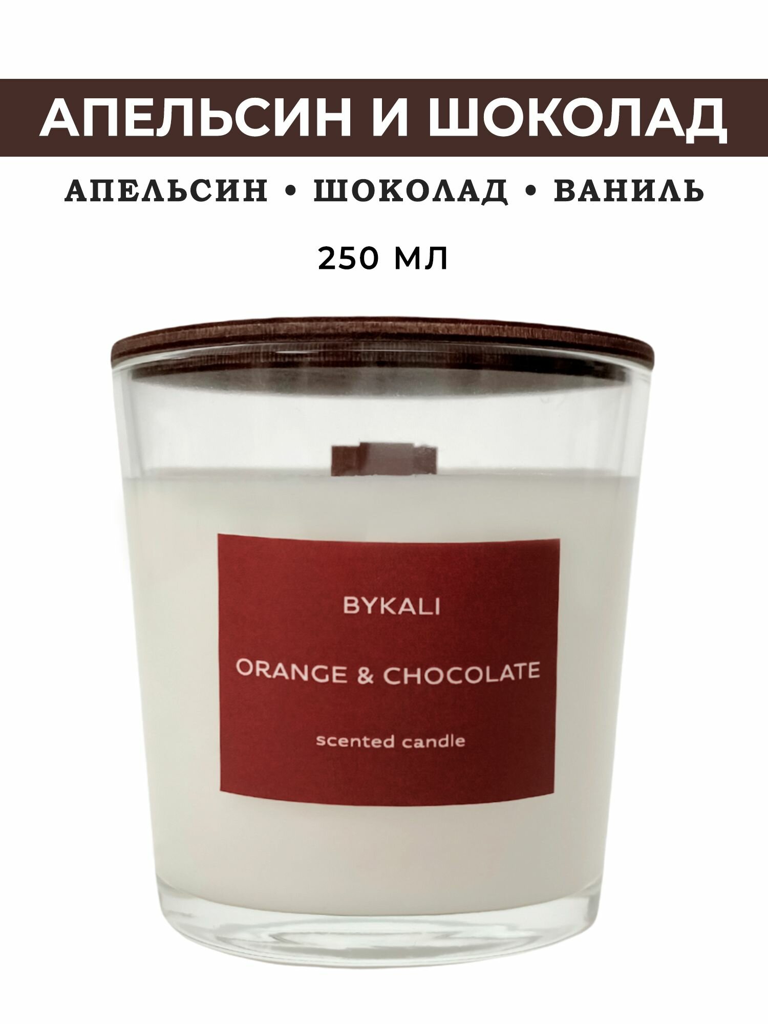 10 цен на Свеча ароматическая "BYKALI" Апельсин и шоколад - с деревянным фитилем в стакане с крышкой 200 мл