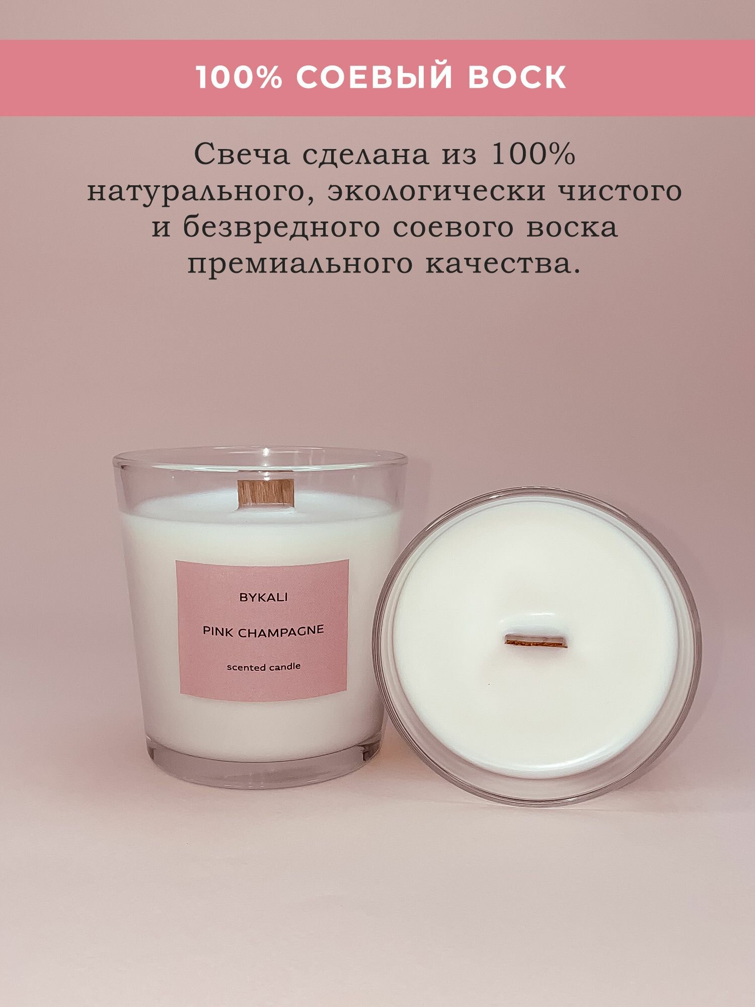 Отзывы на Свеча ароматическая "BYKALI" Розовое шампанское - с деревянным фитилем в стакане с крышкой 200 мл