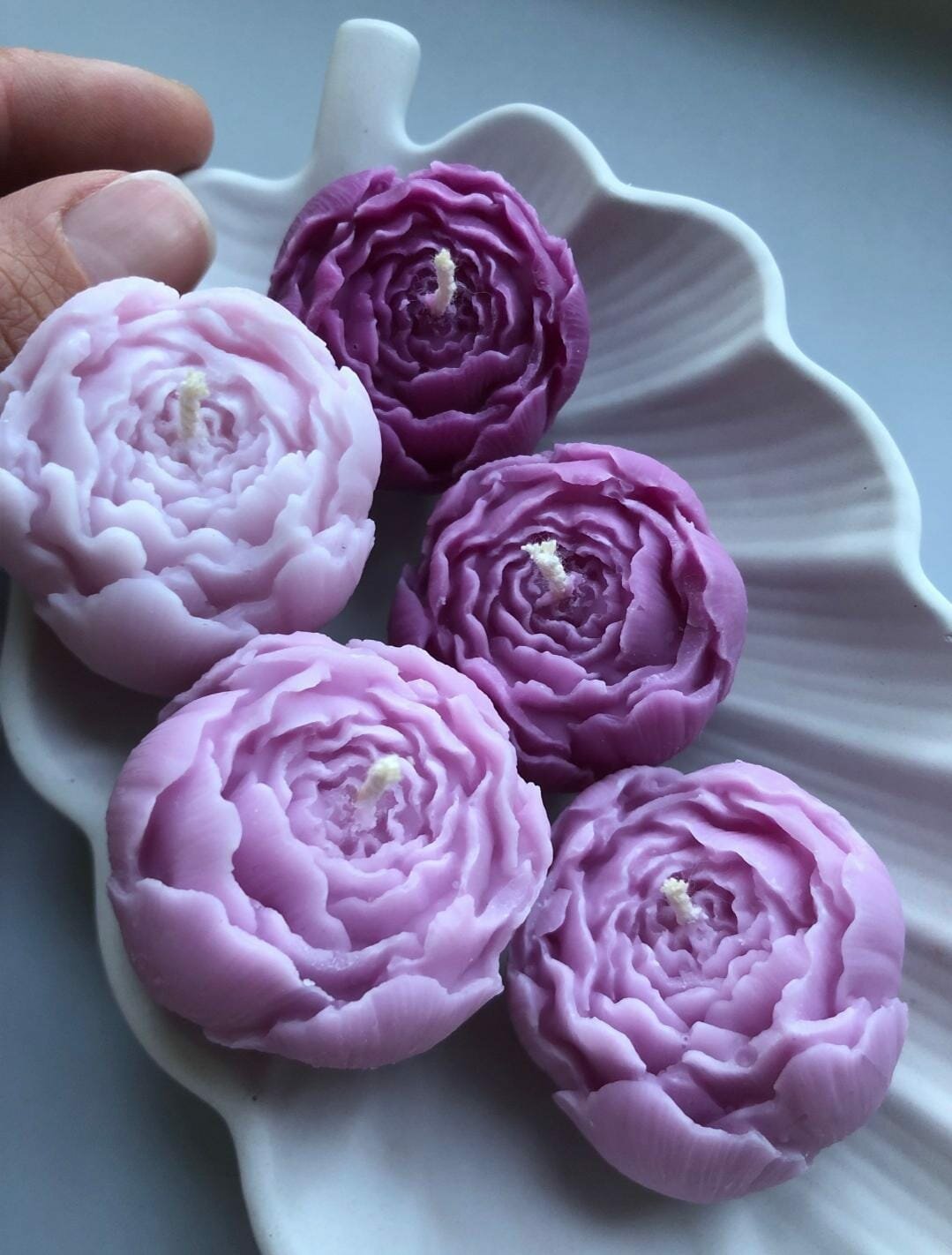 10 цен на Набор интерьерных свечей в форме 5 маленьких пионов "Ежевичная симфония"/Нежная нежность/Уют и тепло в вашем доме/