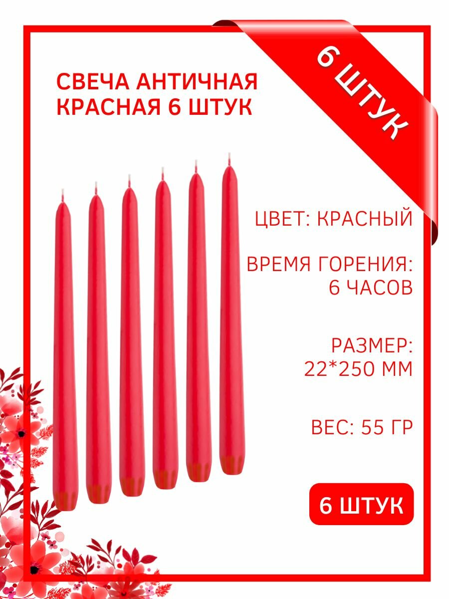 Свеча Античная 22х250 мм, красная, 6 ч, 6 штук информация: