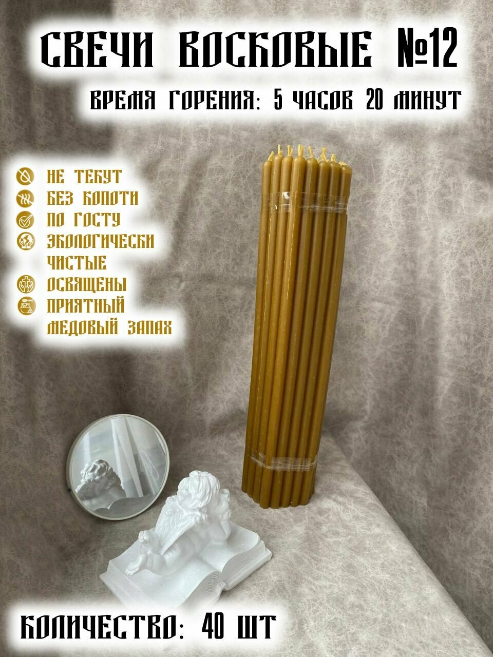 Свечи Церковные, медовые, восковые, набор, натуральные, №40 500г 640 ₽
