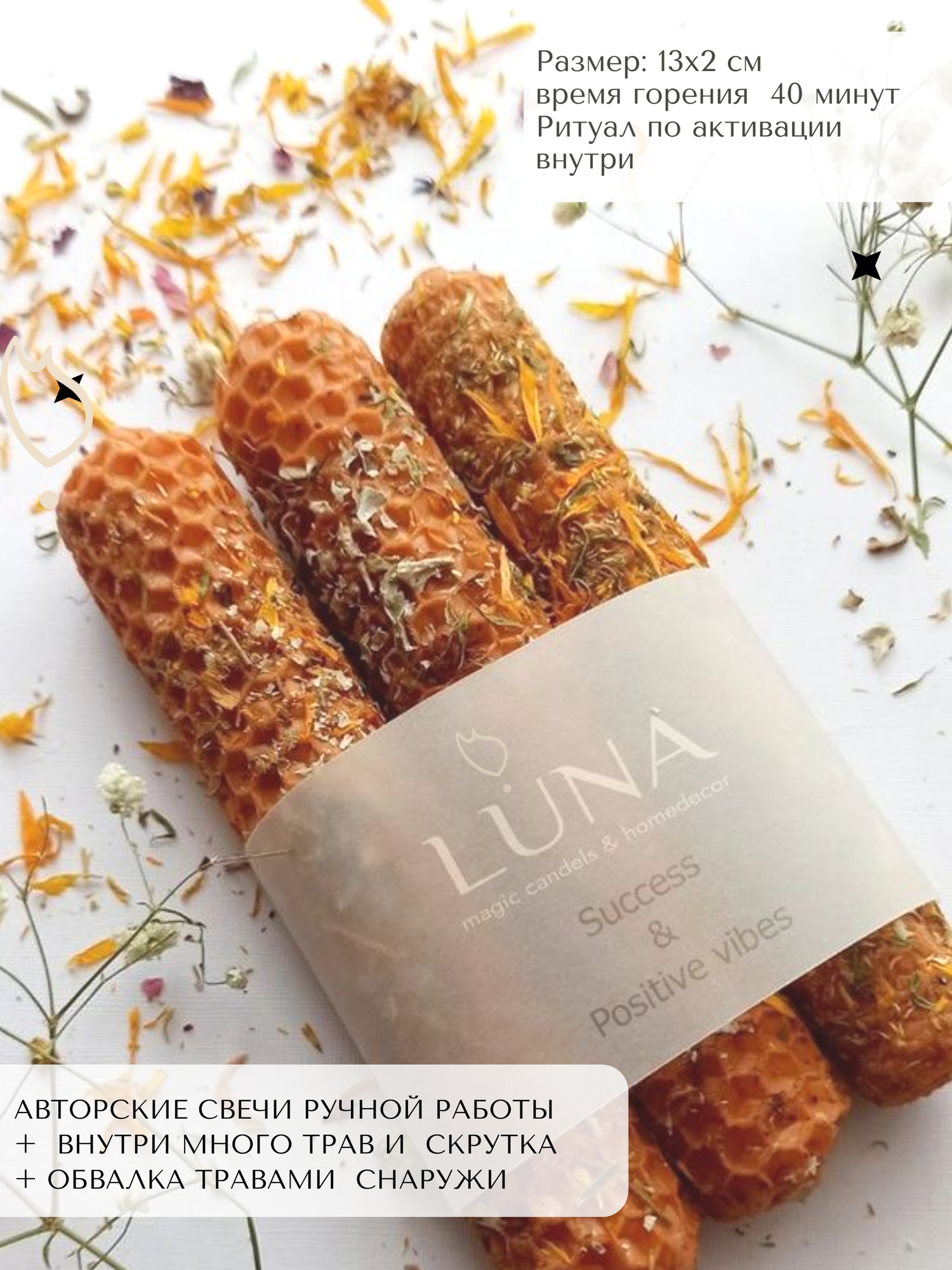 Программные магические свечи с травами и скруткой,3 шт "Успех", ритуальные, оранжевые, 13см, ручная работа информация: