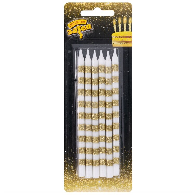 Свечи для торта, Весёлая затея, Полоски золото с глиттером 13см 6шт 314 ₽