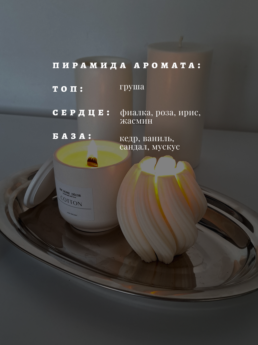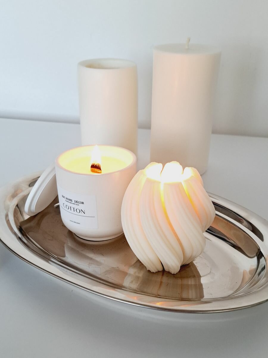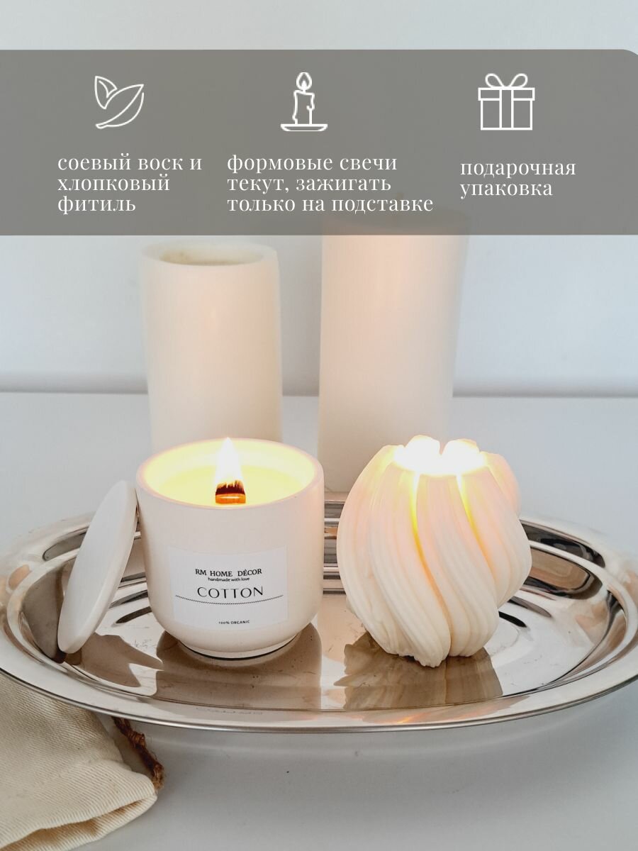 Отзывы на Подарочный набор ароматических свечей, свеча ароматическая декоративная с деревянным фитилем в гипсе с ароматом "ХЛОПОК" и интерьерная "ШАР", 2 шт.