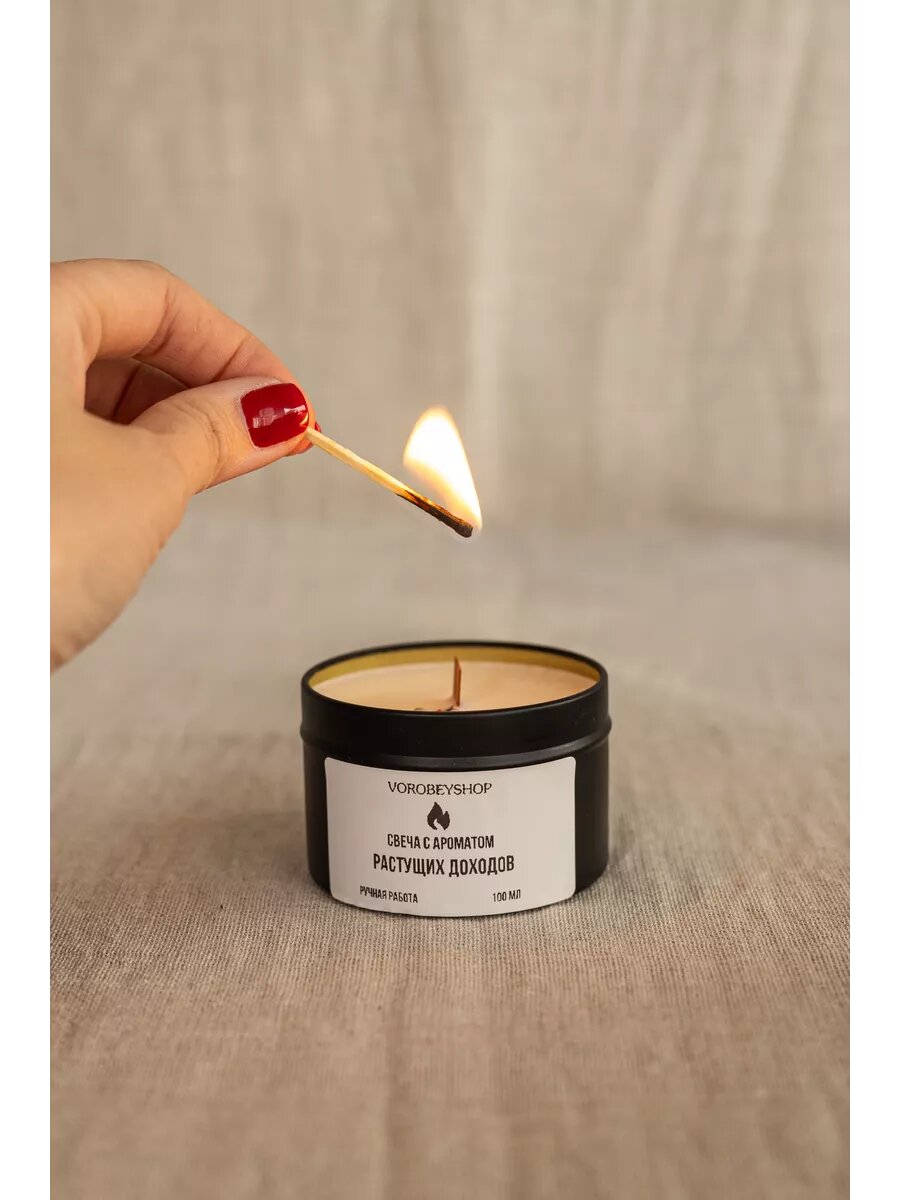 Свеча Vorobeyshop с ароматом "Растущих доходов", кокосовый воск, цилиндрическая информация:
