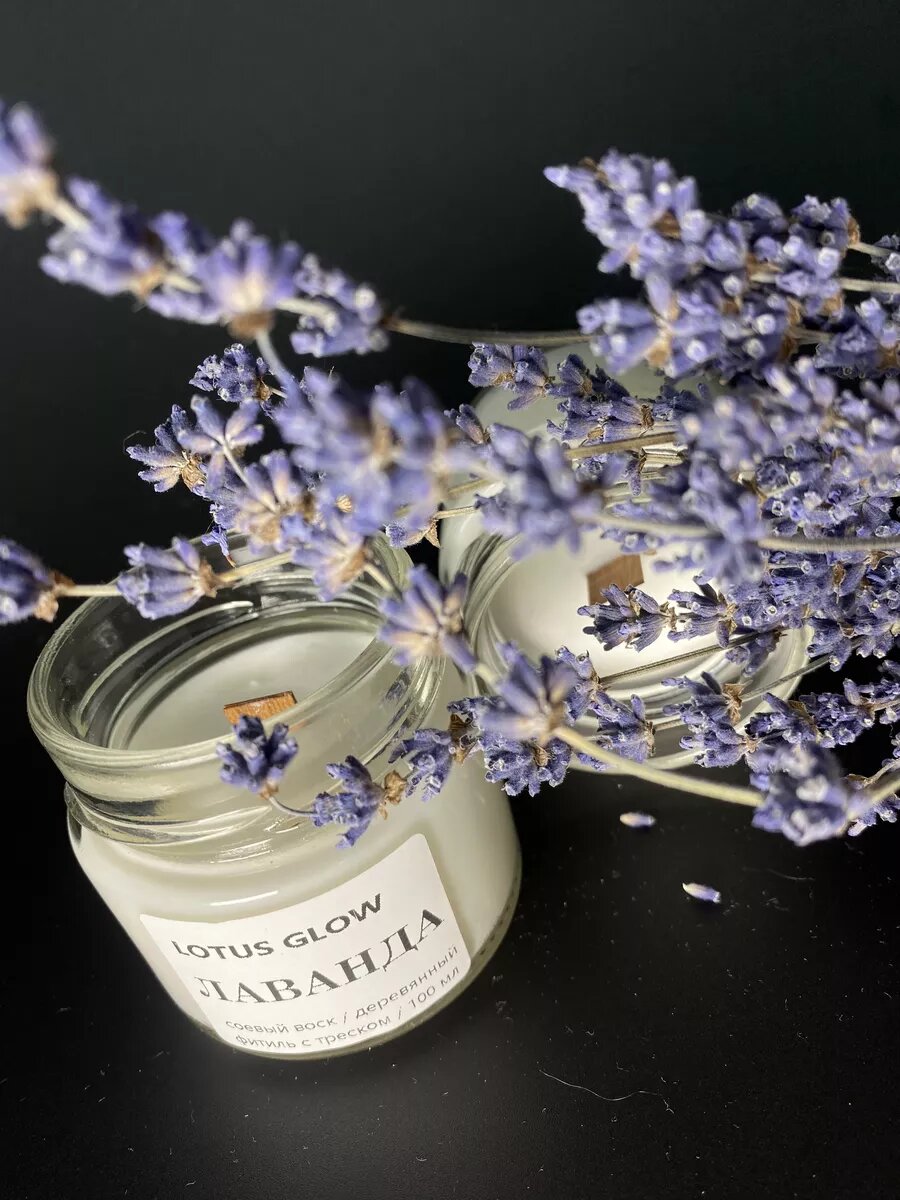 Свечи ароматические восковые кокосовый воск для дома в подарок подруге маме на день рождения аромат лаванда без примесей 300 ₽