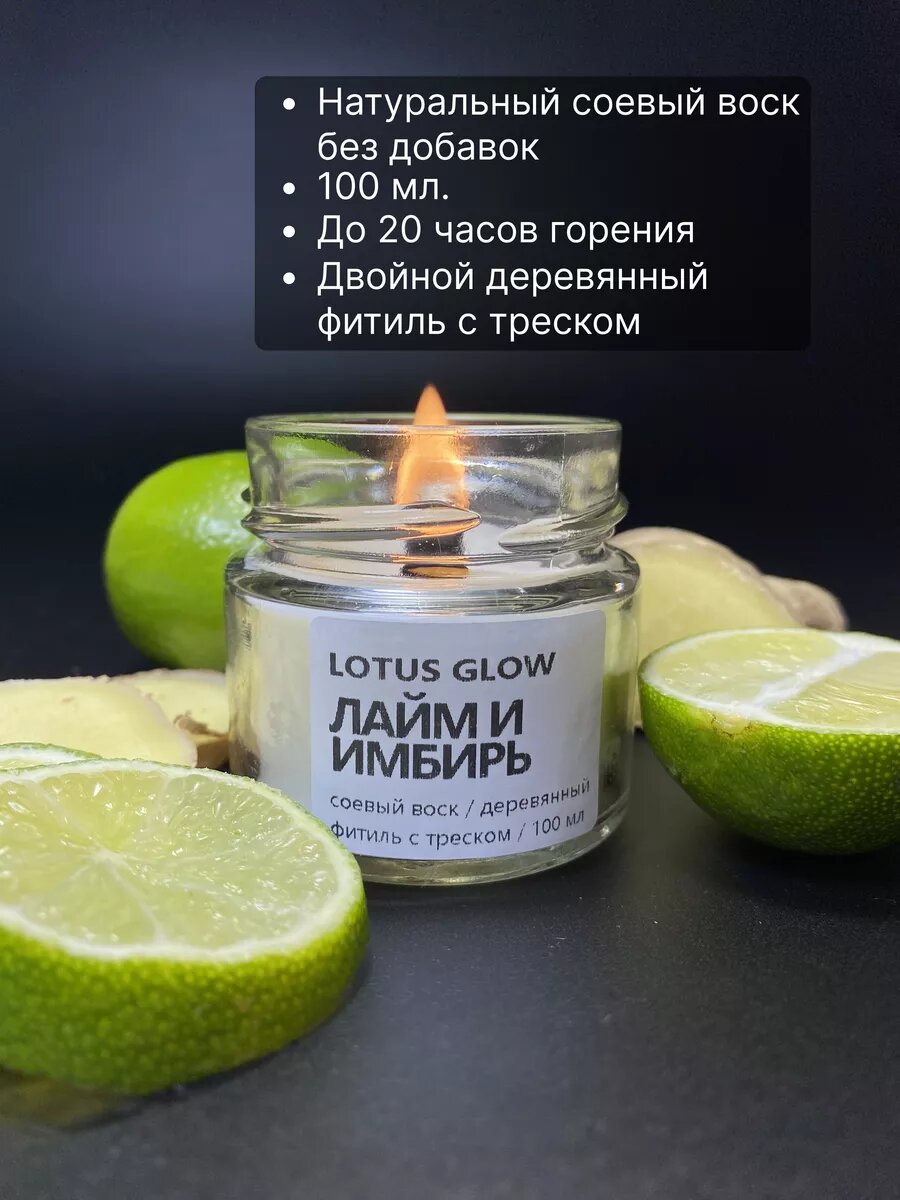 Ароматические свечи Lotus Glow "Лайм и Имбирь", чайная, в стакане 300 ₽