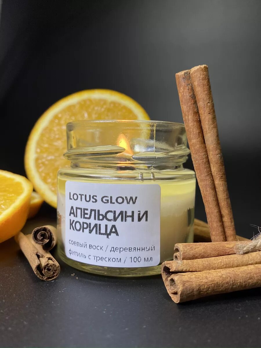 Свечи ароматические Lotus Glow "Апельсин и Корица", чайная, в стакане 300 ₽