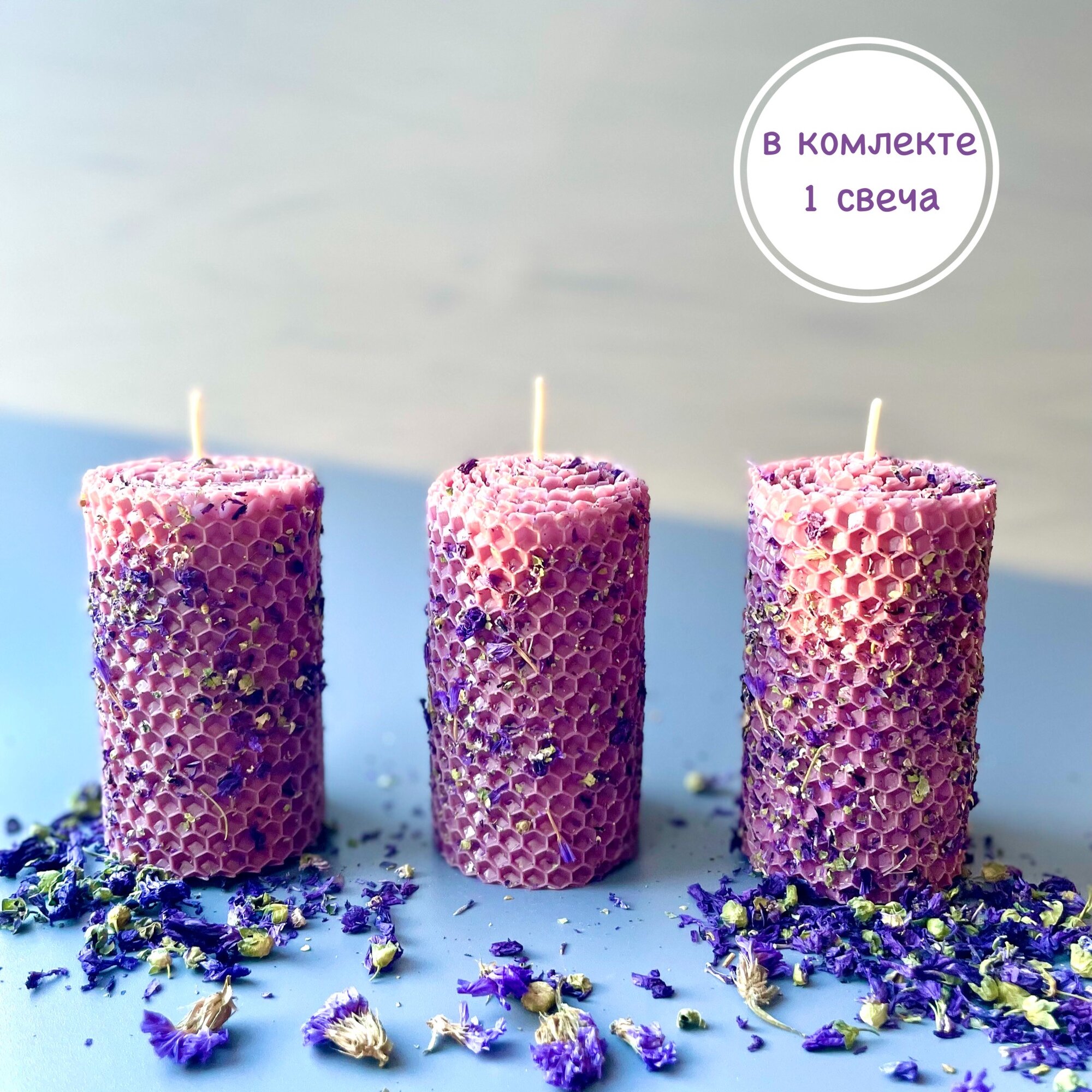 10 цен на Свеча из вощины ароматическая интерьерная с лепестками василька и мальвы аромат Английский Сад