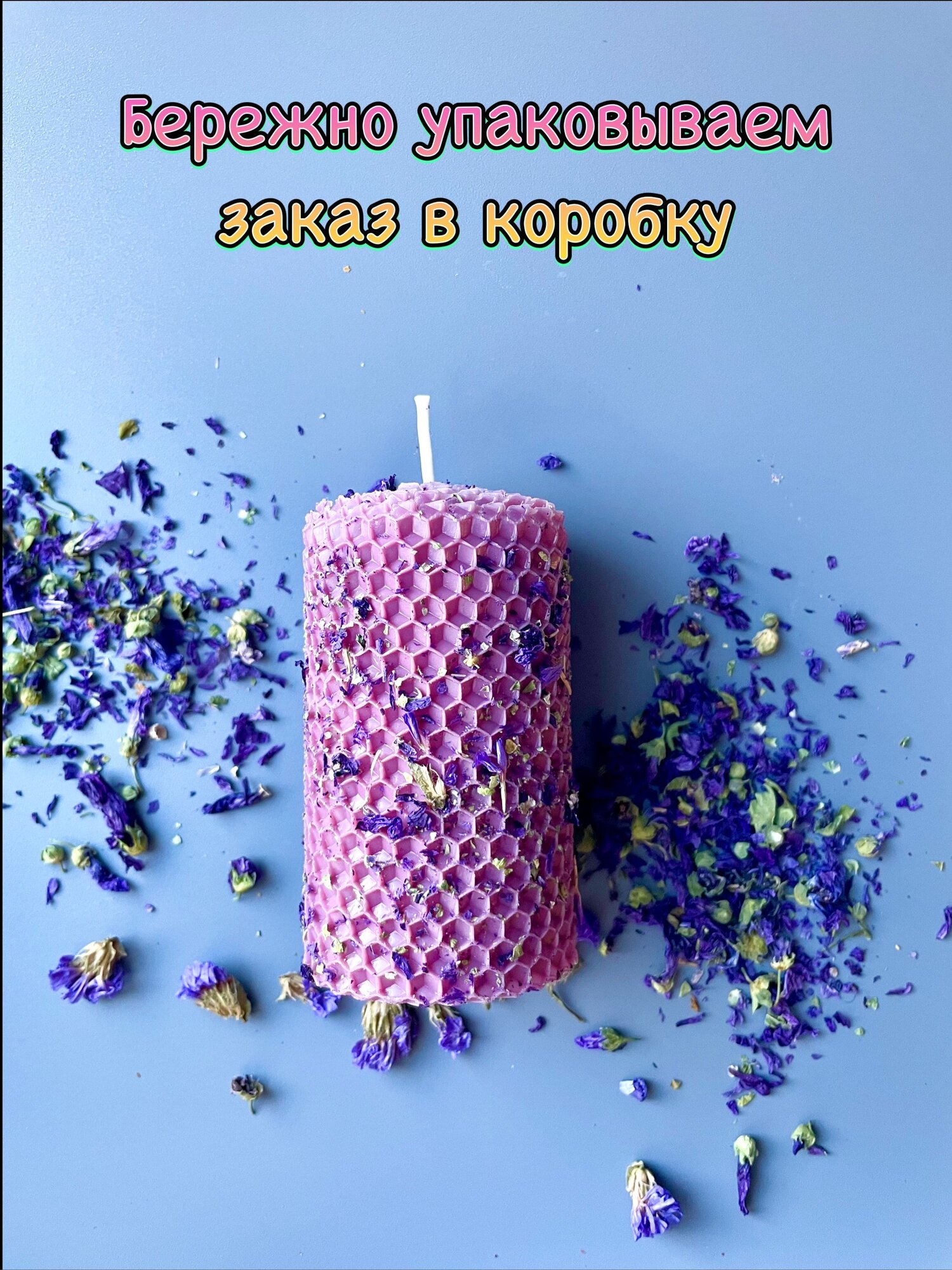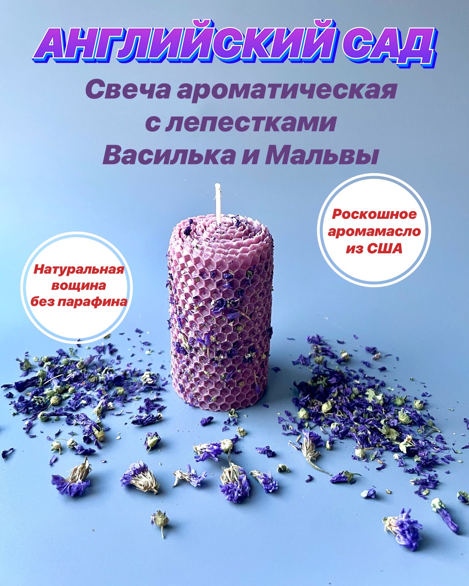 Отзывы на Свеча из вощины ароматическая интерьерная с лепестками василька и мальвы аромат Английский Сад