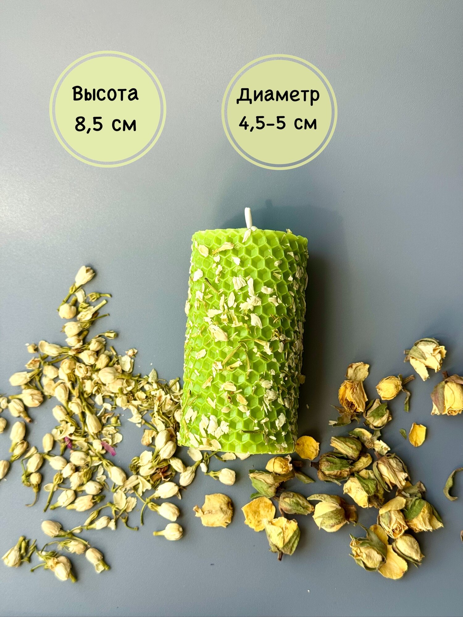 Свеча из вощины ароматическая интерьерная с лепестками Жасмина аромат День в СПА информация: