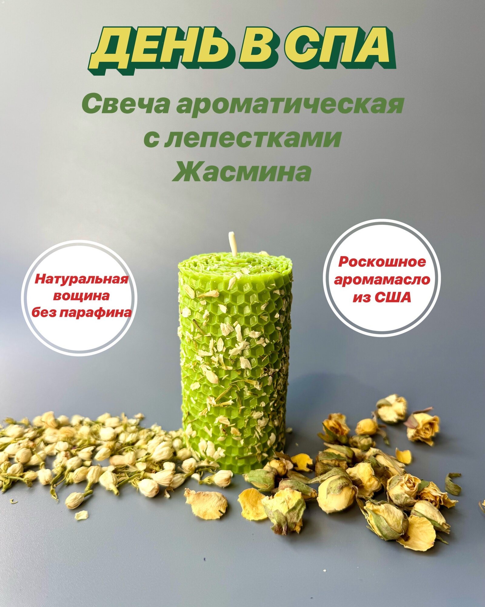 10 цен на Свеча из вощины ароматическая интерьерная с лепестками Жасмина аромат День в СПА