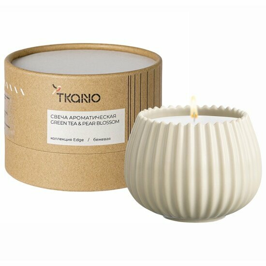 Свеча ароматическая Tkano Edge Green tea & Pear blossom, бежевый информация: