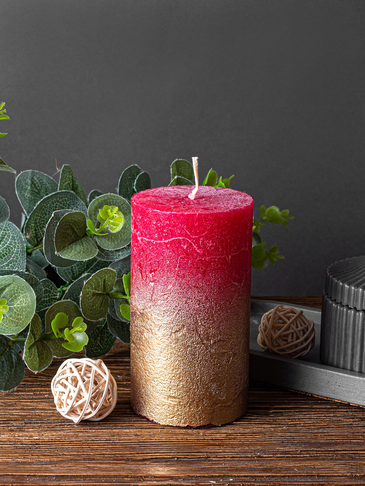 Свеча интерьерная БЛЕСК Home Interiors столбик "Рустик" 60x110 мм, красный и золотой 83305491 информация: