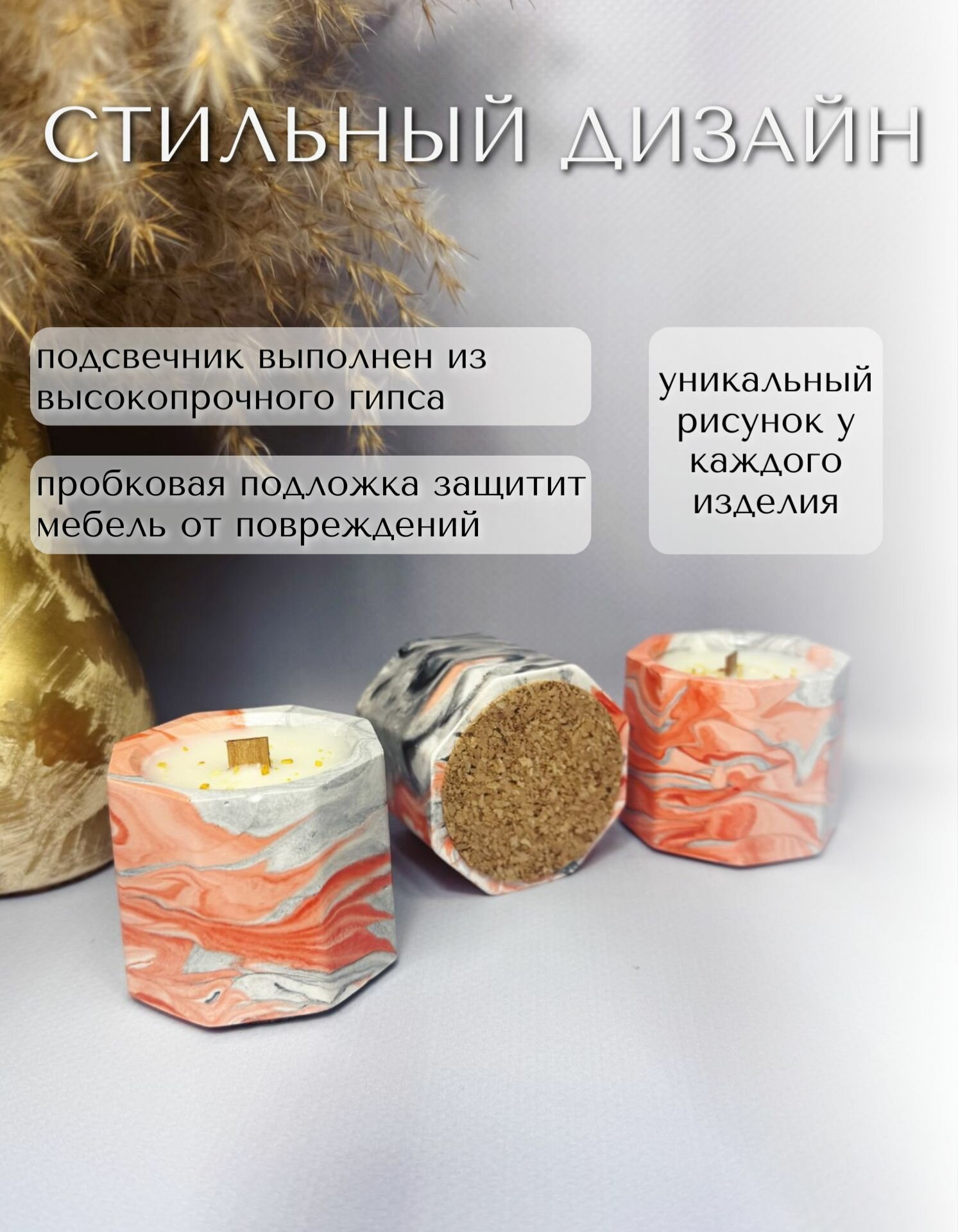 Аромасвеча ручной работы в гипсовом подсвечнике, "Грейфрут", 45 мл. 550 ₽