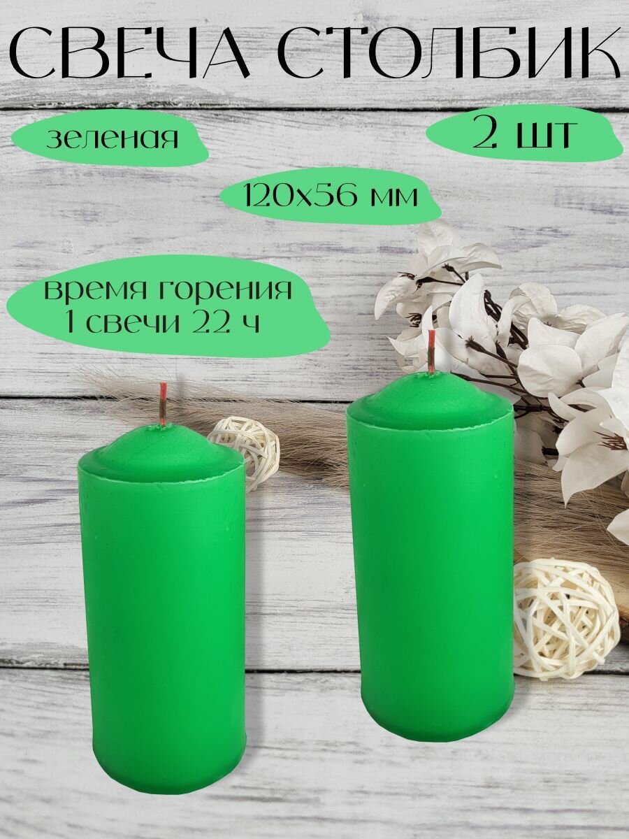 Свеча Столбик, цвет: зеленый, размер: 120х56 мм, 22 ч, 2 шт. информация: