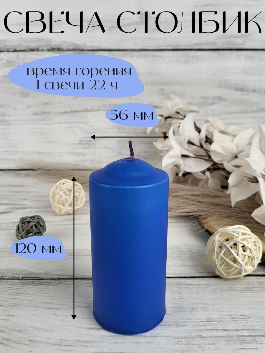 Свеча Столбик, цвет: синий, размер: 120х56 мм, 22 ч, 2 шт. информация:
