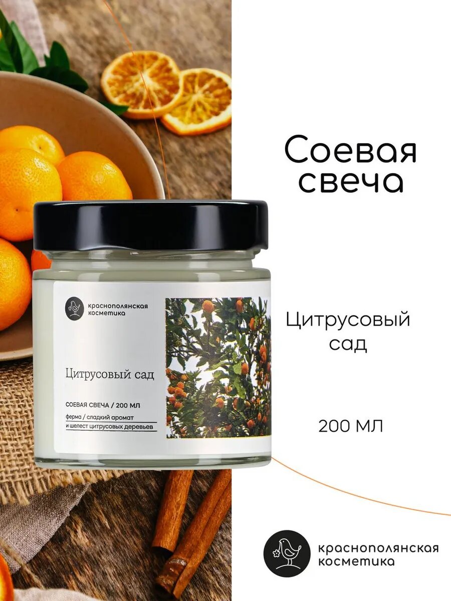 Свеча Краснополянская Косметика "Цитрусовый Сад", 100% натуральная информация: