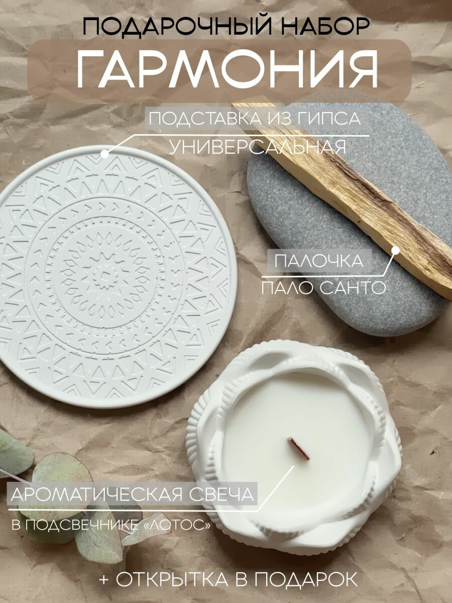 10 цен на Набор Гармония из гипса со ароматической свечой и Пало Санто