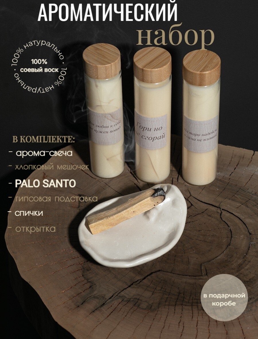 Ароматический набор свеча+Palo Santo HEDONISM CANDLES , в стеклянной форме, аромат "Зефир у костра" информация: