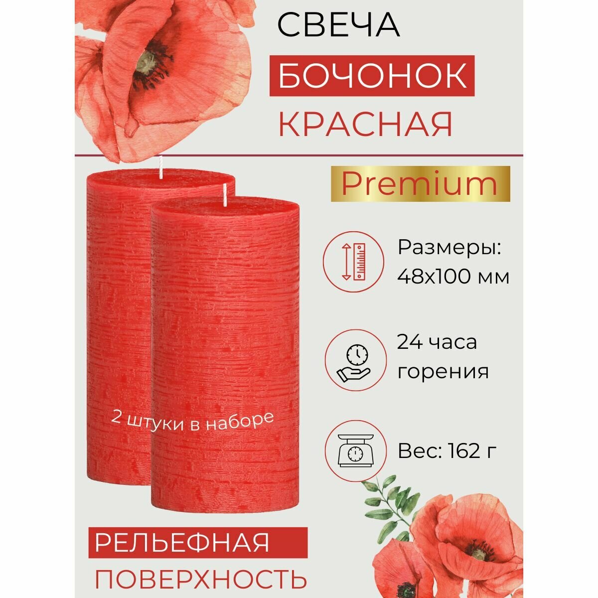 10 цен на Свеча декоративная Бочонок ручной работы 48х100 мм, премиум-класс, 24 часа, красная, 2 шт.