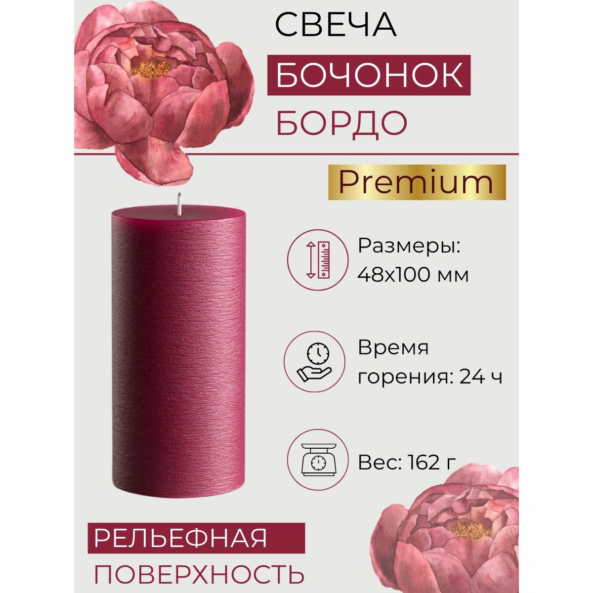 10 цен на Свеча декоративная Бочонок ручной работы 48х100 мм, премиум-класс, 24 часа, бордовый