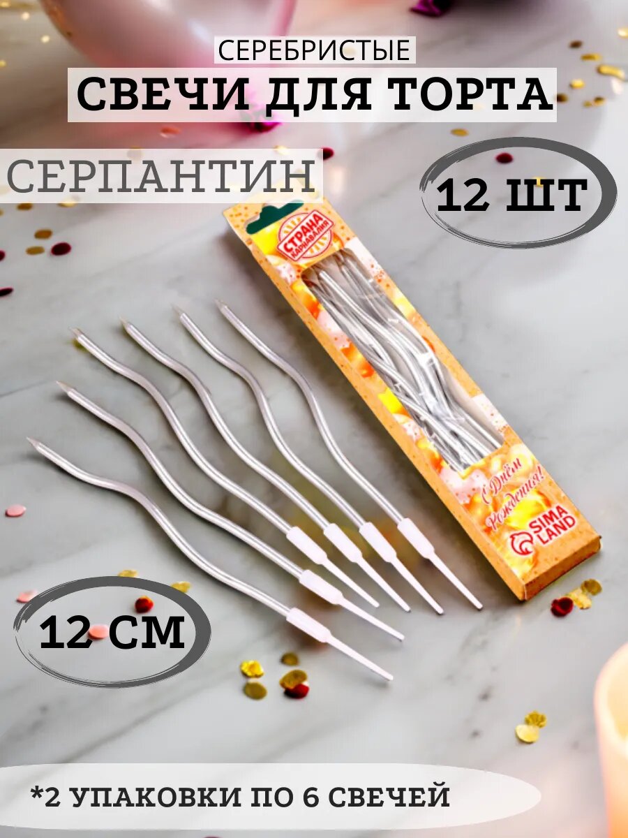10 цен на Свечи Страна Карнавалия "Серпантин", витые, декоративные, серебристые, парафиновые, 12 штук