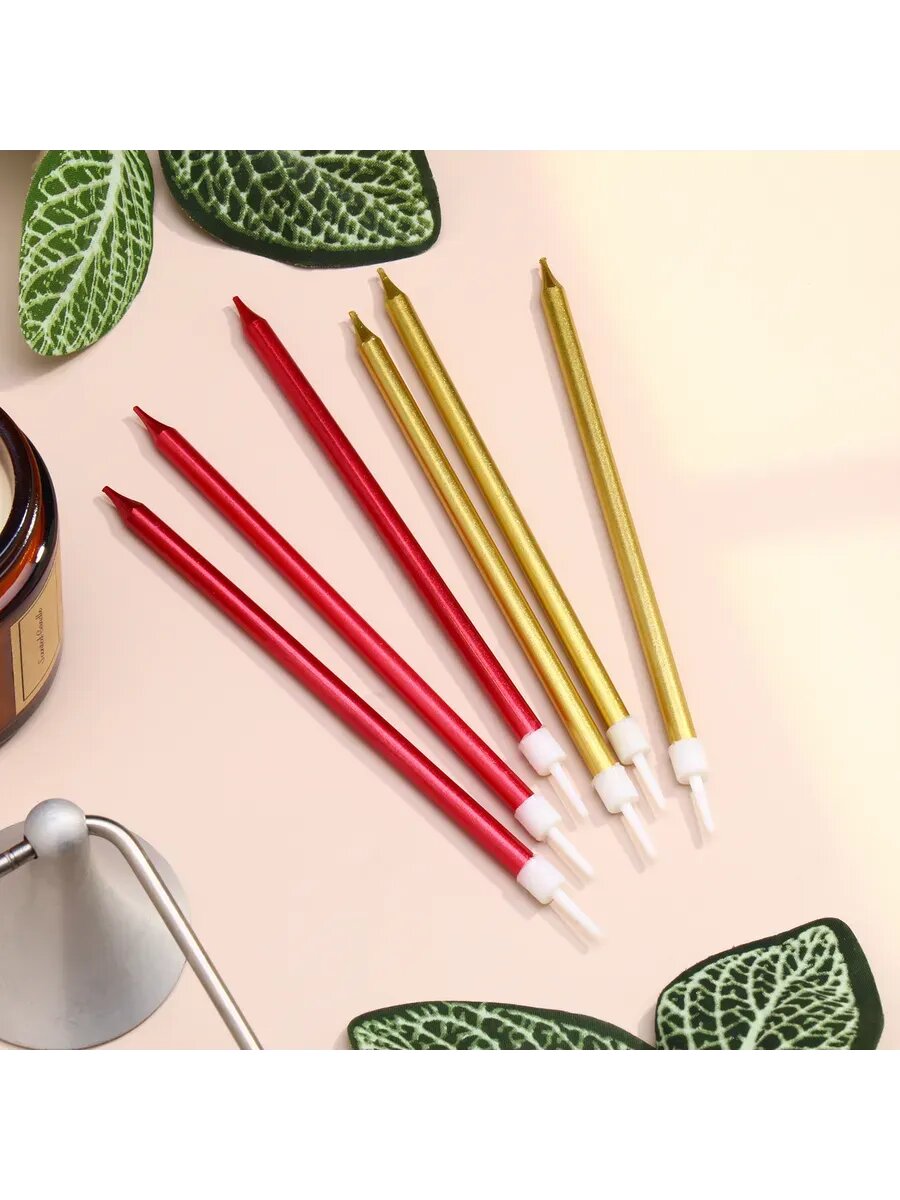 Набор свечей Страна Карнавалия "Для торта", для декора, прямые, золотистые, красные, 13 см, 12 штук информация: