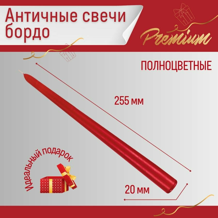 10 цен на Свеча Античная полноцветная ручной работы 20х255 мм, бордовая, премиум-класс, 4 шт.