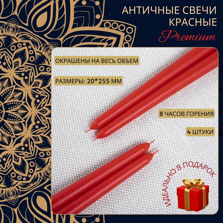 10 цен на Свеча Античная полноцветная ручной работы 20х255 мм, красная, премиум-класс, 4 шт.