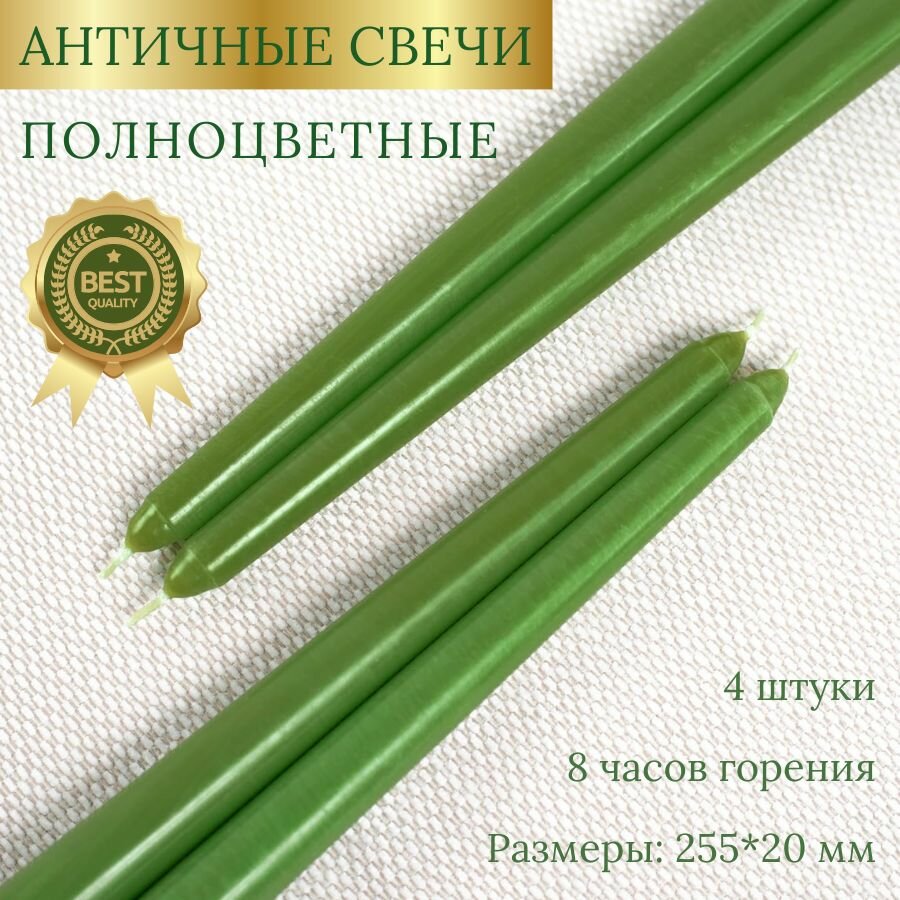10 цен на Свеча Античная полноцветная ручной работы 20х255 мм, зеленая, премиум-класс, 4 шт.