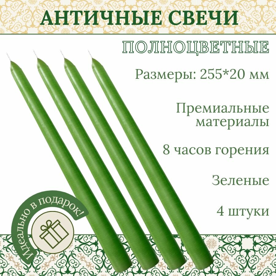 Свеча Античная полноцветная ручной работы 20х255 мм, зеленая, премиум-класс, 4 шт. информация: