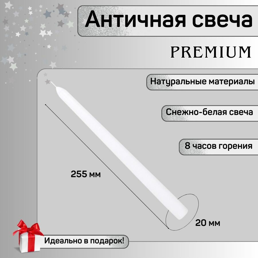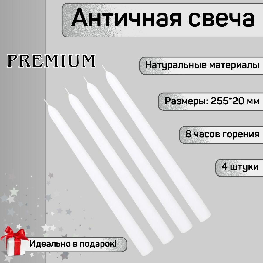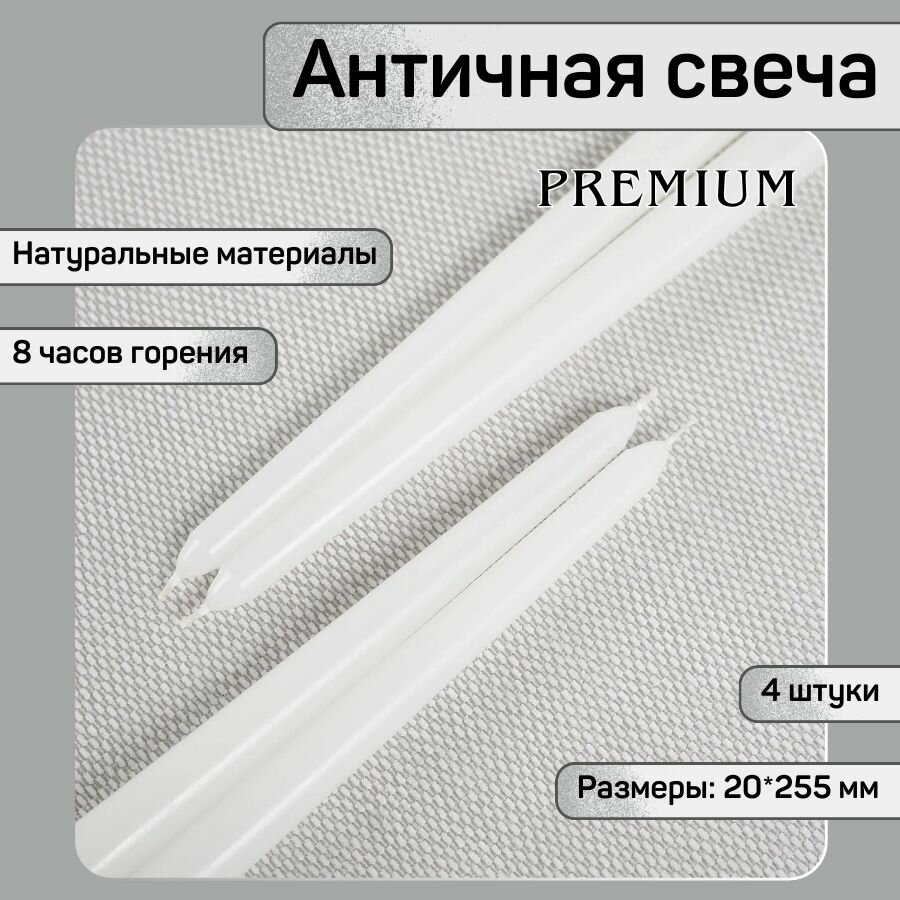 Свеча Античная полноцветная ручной работы 20х255 мм, белая, премиум-класс, 4 шт. информация: