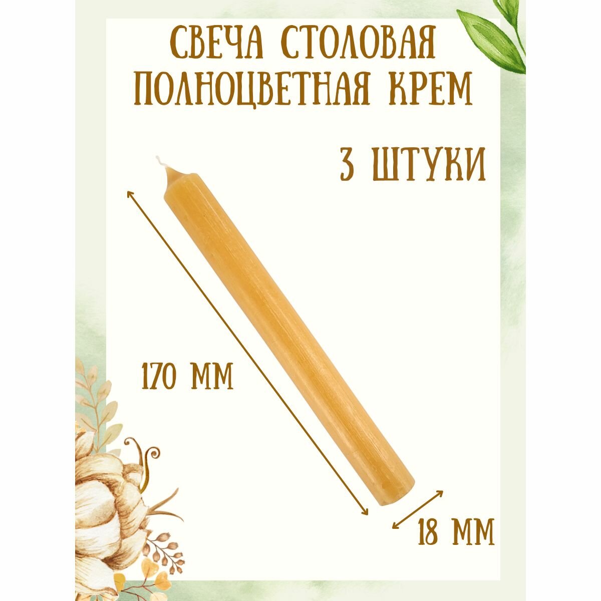 10 цен на Свеча столовая полноцветная "Пастель" 170х18 мм, крем, время горения: 2-3 часа, 3 свечи