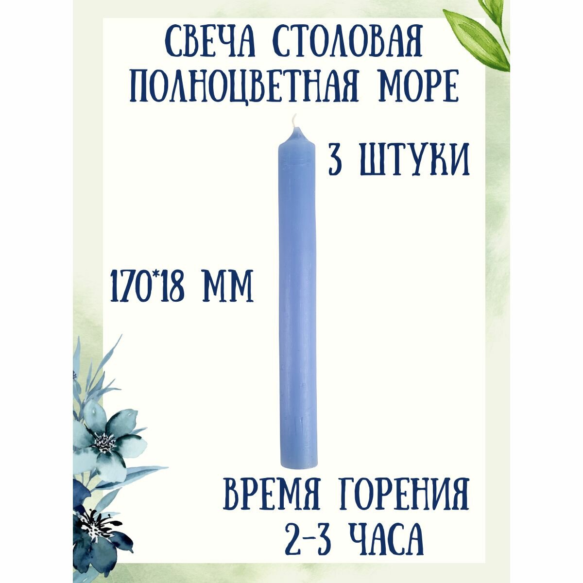 Свеча столовая полноцветная "Пастель" 170х18 мм, море, время горения: 2-3 часа, 3 свечи информация: