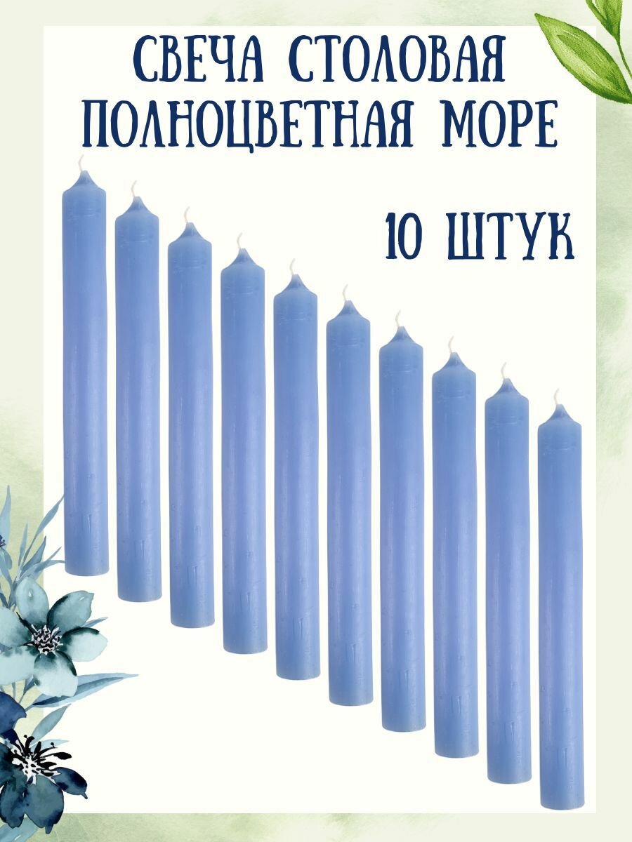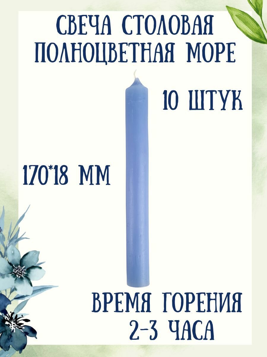 Свеча столовая полноцветная "Пастель" 170х18 мм, море, время горения: 2-3 часа, 10 свечей информация:
