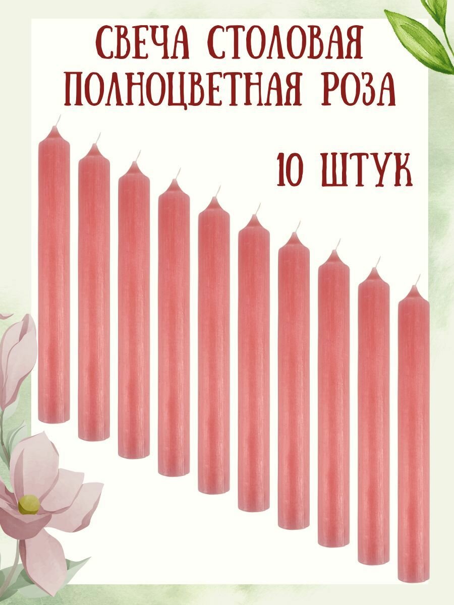 10 цен на Свеча столовая полноцветная "Пастель" 170х18 мм, роза, время горения: 2-3 часа, 10 свечей