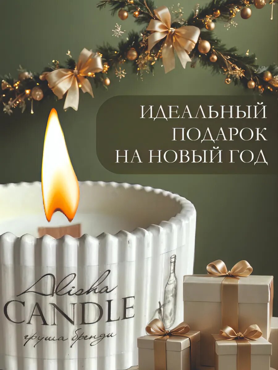 10 цен на Ароматическая свеча из кокосового воска с деревянным фитилем в гипсовой шкатулке, аромат груша и бренди.