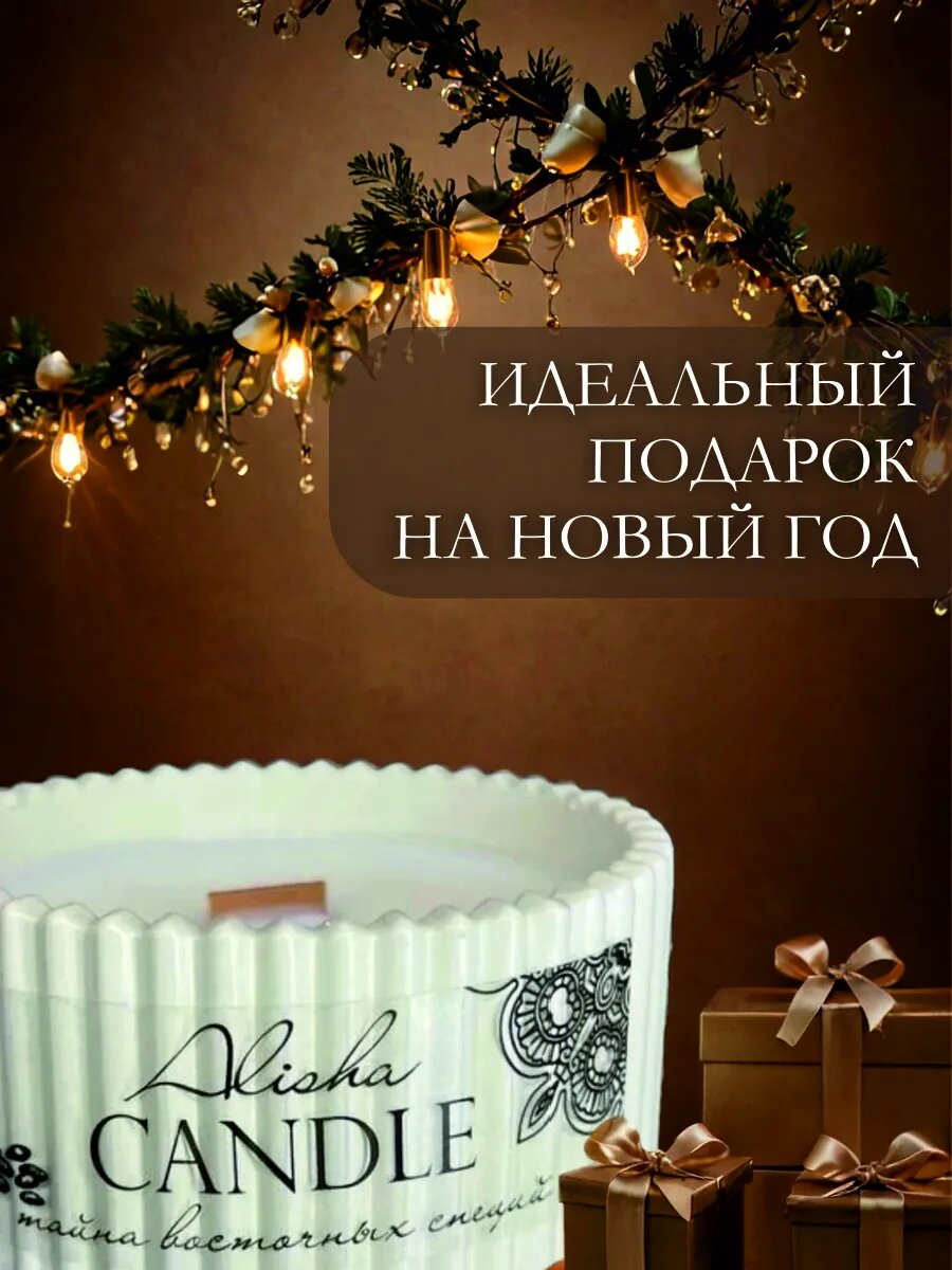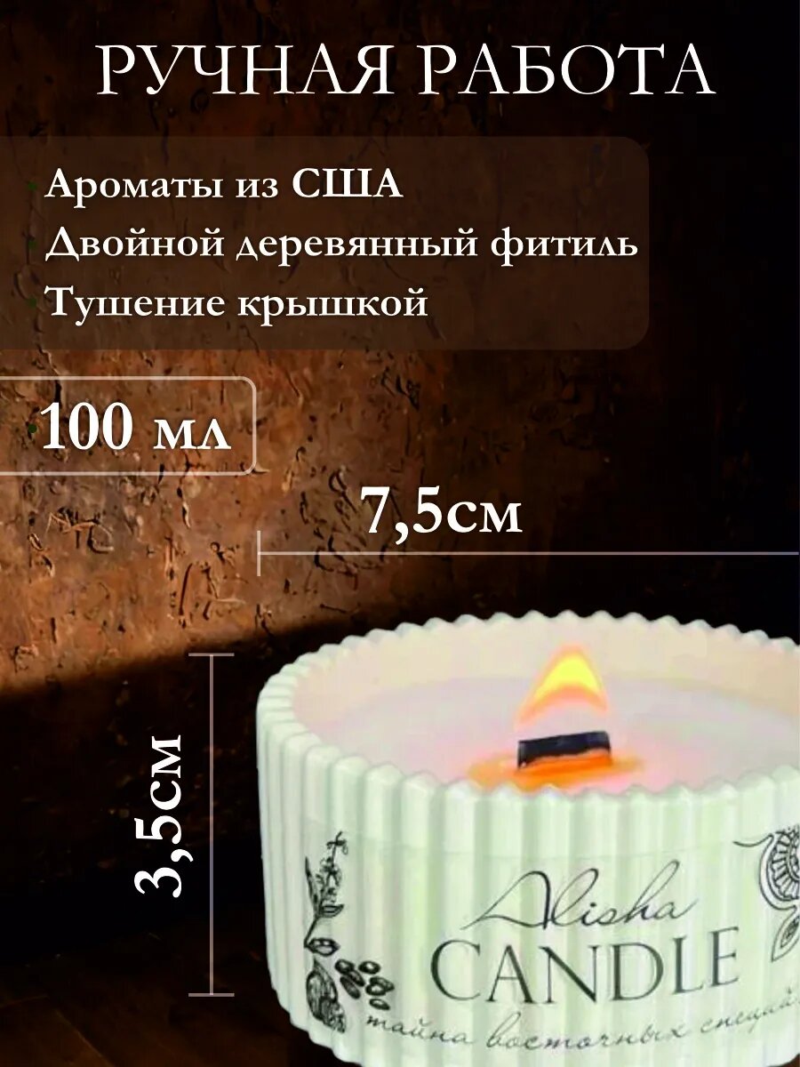 10 цен на Ароматическая свеча с деревянным фитилем в гипсовой шкатулке. благородный мужской аромат