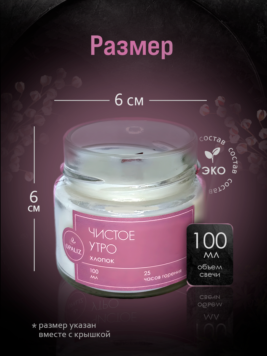 Свеча ароматическая с деревянным фитилем в банке OPALIZ "Чистое утро" Хлопок информация: