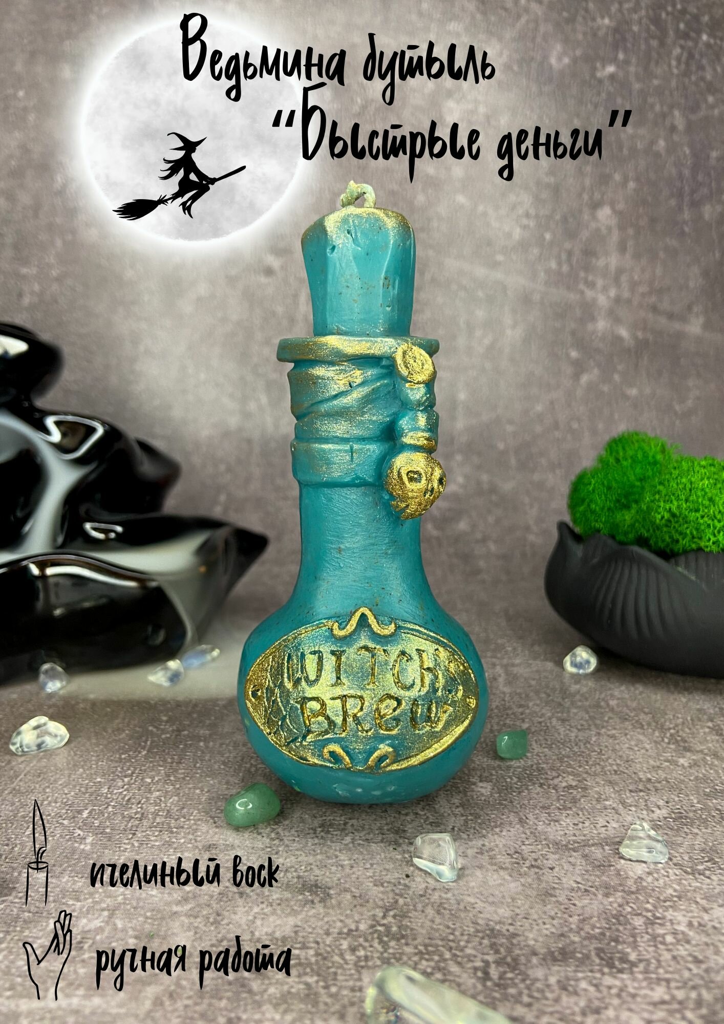 10 цен на Свеча Ведьмина Бутыль" Быстрые Деньги" , из пчелиного воска,11см,100 г