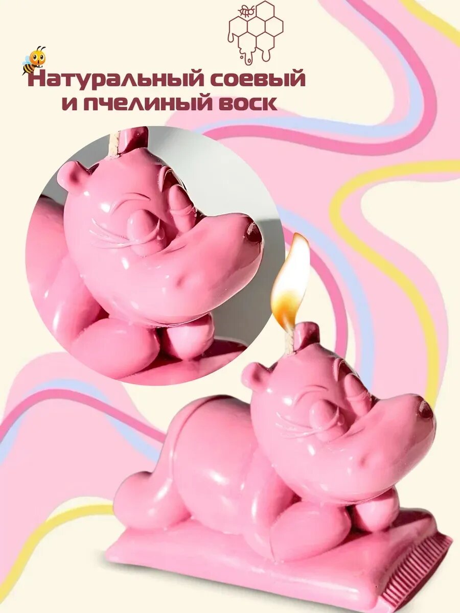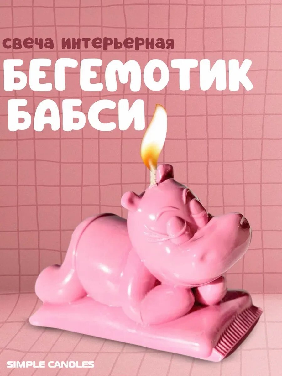 Отзывы на Свеча Simple Candles "Бегемотик Бабси", интерьерная, соевый и пчелиный воск, время горения 5 ч, розовая