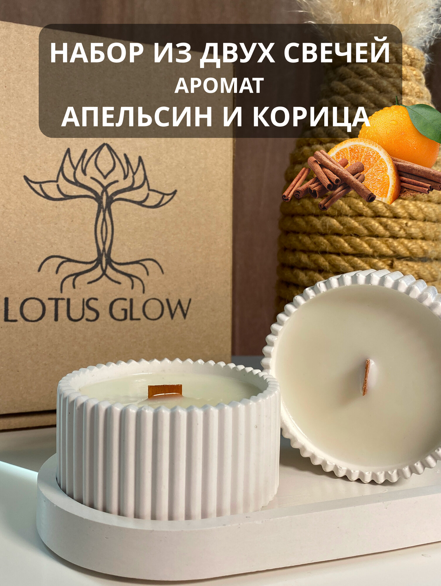 Набор ароматических свечей шкатулка в гипсе, свечи ароматические аромат "Апельсин и корица", Lotus Glow информация: