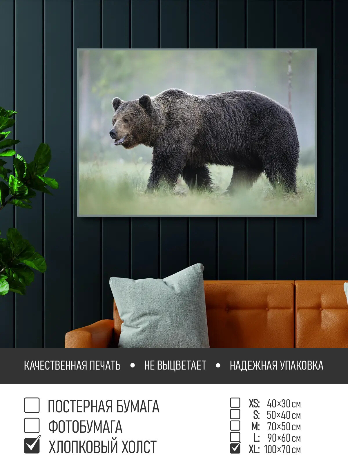 Постер на холсте Медведь в туманном лесу, 100х70 см ПолиЦентр, цифровая фотопечать информация: