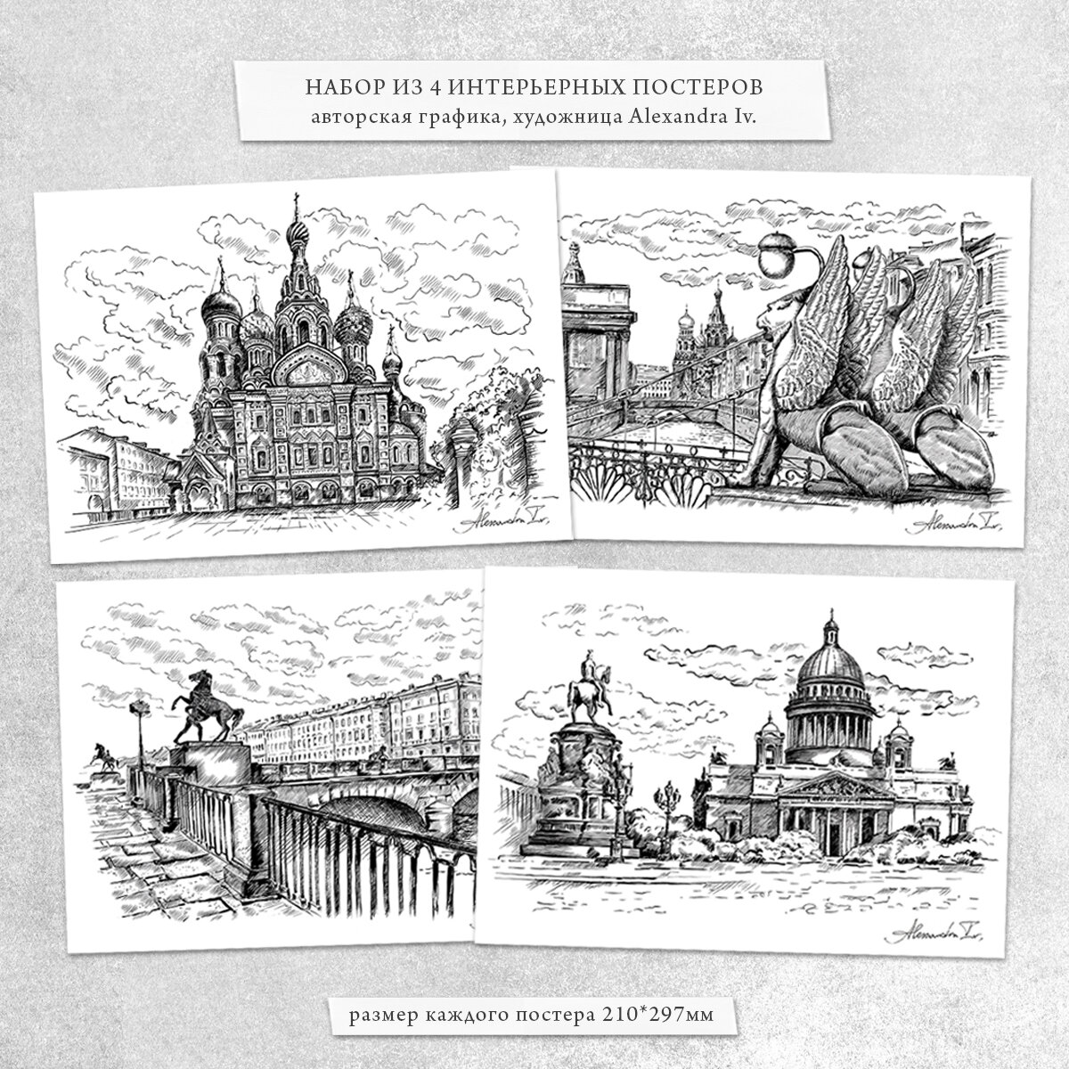 Постеры для интерьера от Alexandra Iv. ,"Санкт-Петербург. Графика", набор из 4 штук, формат А4 информация: