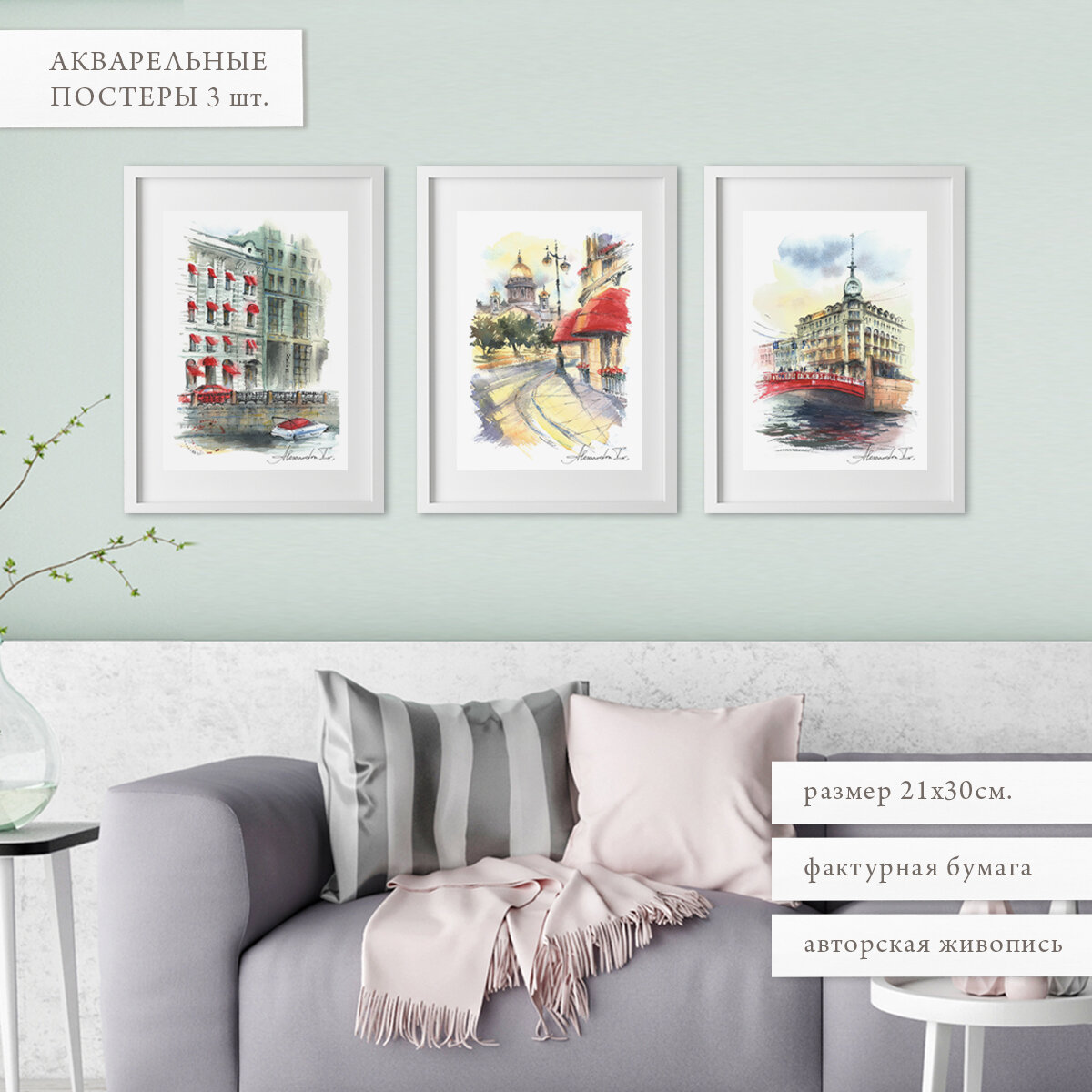 Бумажные Постеры для интерьера без рам от Alexandra Iv. ,"Санкт-Петербург. Весна", набор из 3 штук, формат А4 855 ₽